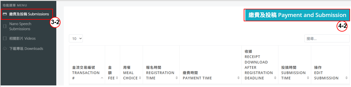 3-2) General participants click the “繳費及投稿Submission” on the left list and 4-2) click the blue button on the right to pay the fee and then fill in the form and upload your abstract ± powerpoint file. Please click "Abstract Submission" and read the guidelines before submitting.